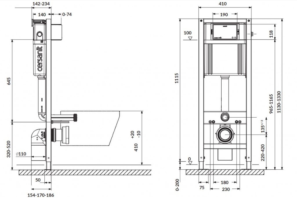 Rám pre WC, na suchú inštaláciu. Odolný, úzky rám - iba 41 cm. Zaručuje dlhé a bezproblémové používanie.