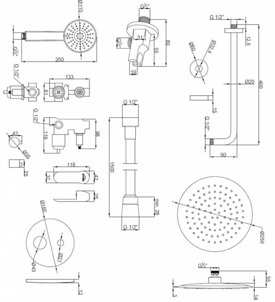 | Dažďová sprcha | Ø 25 cm SLIM, ANTI-CALC, ABS |