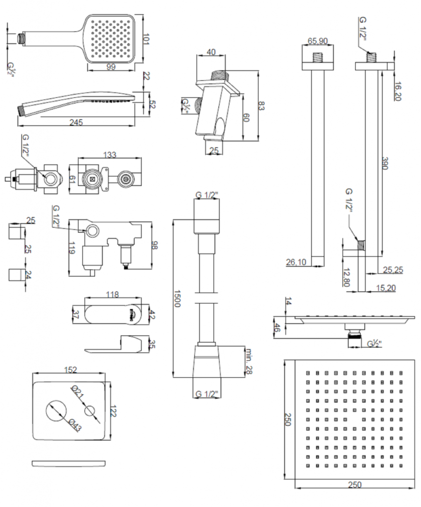 - sprchové rameno 2,5x2,5 cm, dlhé 40 cm