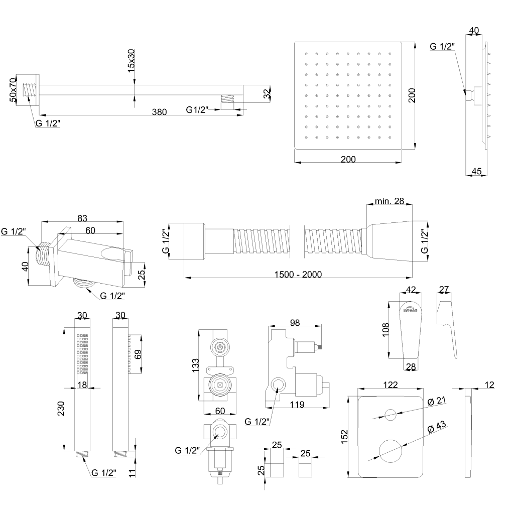 - kĺbová hlavová sprcha 20x20 cm z nerezovej ocele, so systémom anti-calc-proti usadzovaniu vodného kameňa