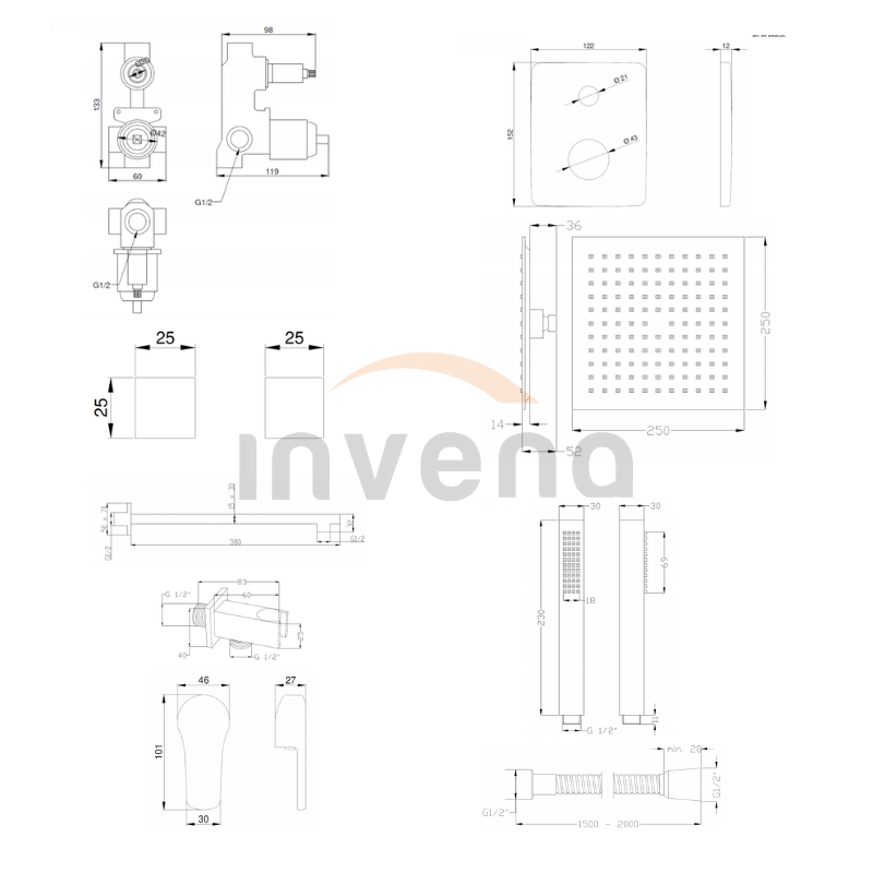 | Charakter | podomítkový sprchový set |