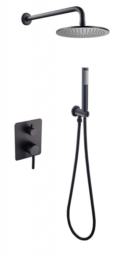 - Set obsahuje podomietkovú batériu, hlavovú sprchu s držiakom, vývod zo steny s držiakom, ručnú sprchu a hadicu
