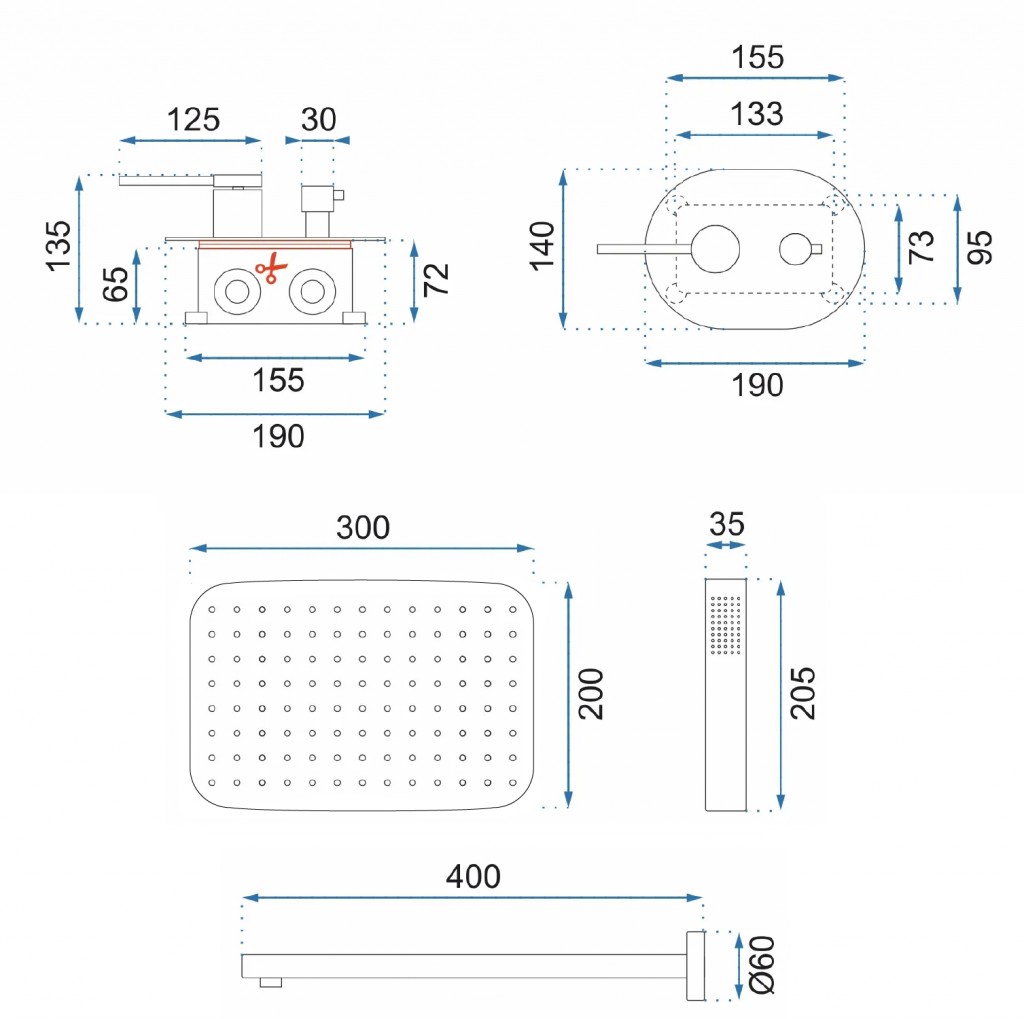 | Balenie | skrytá baterie, dešťová sprcha, rameno k dešťové sprše, 1500 mm hadice, sluchátko, držák sluchátka, mřížky, box |