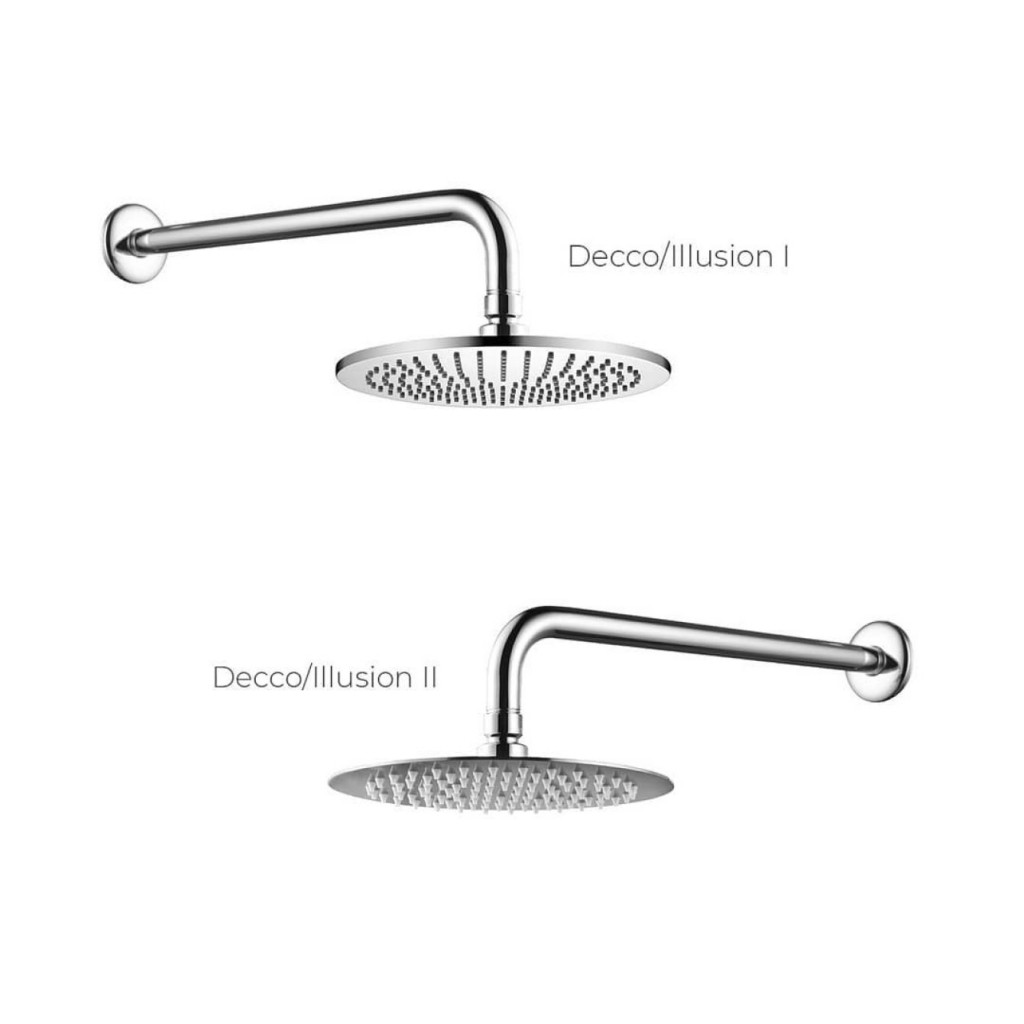 Jedinečný podomietkový set s príslušenstvo SLIM Decca / ILLUSION II. Kompletné riešenie pre váš sprchovací kút. Set obsahuje podomietkovú batériu, hlavovú sprchu s držiakom, vývod zo steny s držiakom, ručnú sprchu a hadicu. Batéria je dodávaná vrátane podomietkového modulu, ten výrazne uľahčuje montáž. Dodávame v troch farbách a to lesklý chróm, čierna matná alebo zlatá.