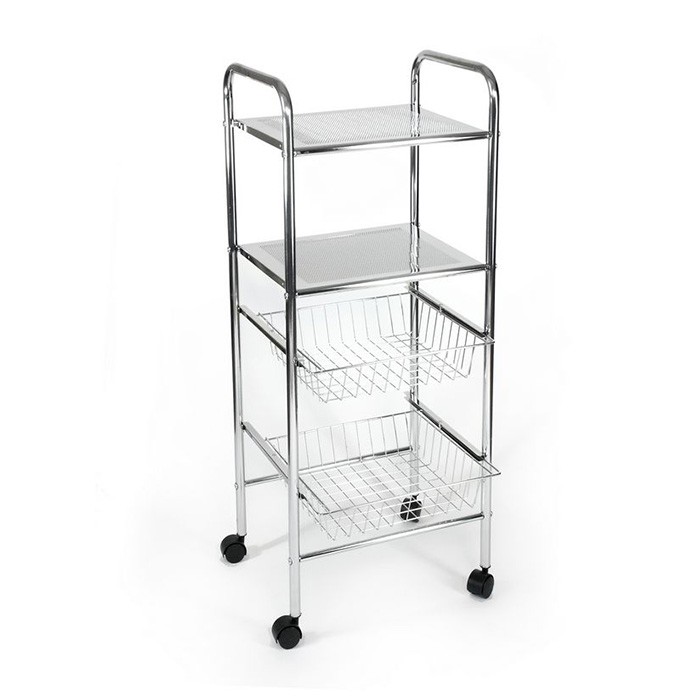 | Popis: | • pojazdný kúpeľňový regál • 2 x kovová, chrómovaná polička • 2 x kovový, chrómovaný kôš |