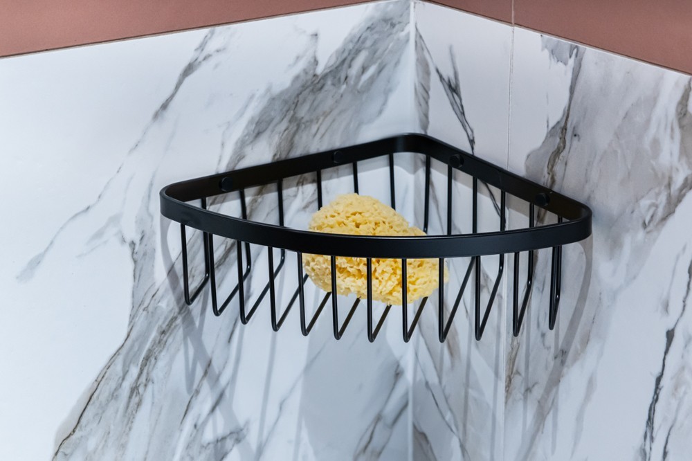 Klasická drôtená polica trojuholníkového tvaru z čierno lakovanej ocele s matným povrchom. Súprava obsahuje montážne skrutky so špeciálnymi čiernymi krytmi. To vytvára veľmi estetický efekt.