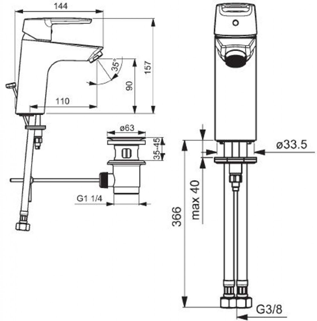 • pripojenie tlakovej hadice G 3/8