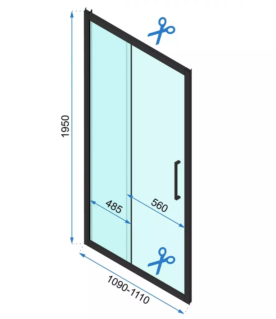 - Sklo je zasunuté do hliníkových profilov, pomocou ktorých môžete regulovať celkovú šírku. Jednoducho sklo povysuniete, či zasuniete tak, ako práve vyžaduje váš priestor. Celkovú šírku si upravíte od 109 cm do 111 cm.