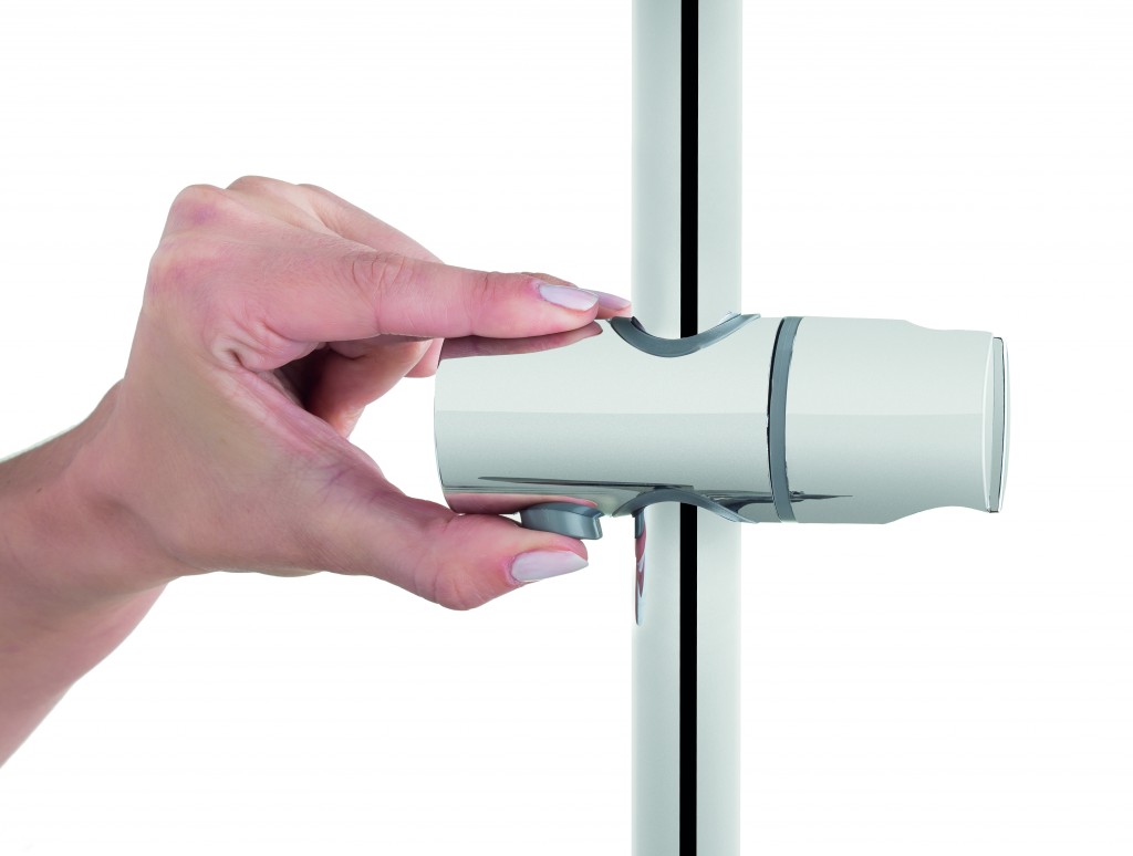 Nastaviteľný plastový posuvný jazdec pre sprchovú tyč s priemerom 22 cm.