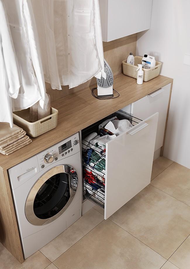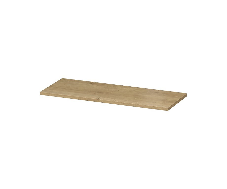 Doska pre konfiguráciu s podpultovým nábytkom , na ktorú môžeme namontovať umývadlo alebo umiestniť šikovné drobnosti a kozmetiku. Vrchná doska je vyrobená z laminované drevotrieskové dosky vo farbe dub .