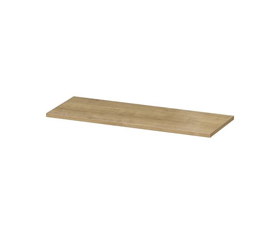 Doska pre konfiguráciu s podpultovým nábytkom , na ktorú môžeme namontovať umývadlo alebo umiestniť šikovné drobnosti a kozmetiku. Vrchná doska je vyrobená z laminované drevotrieskové dosky vo farbe dub .