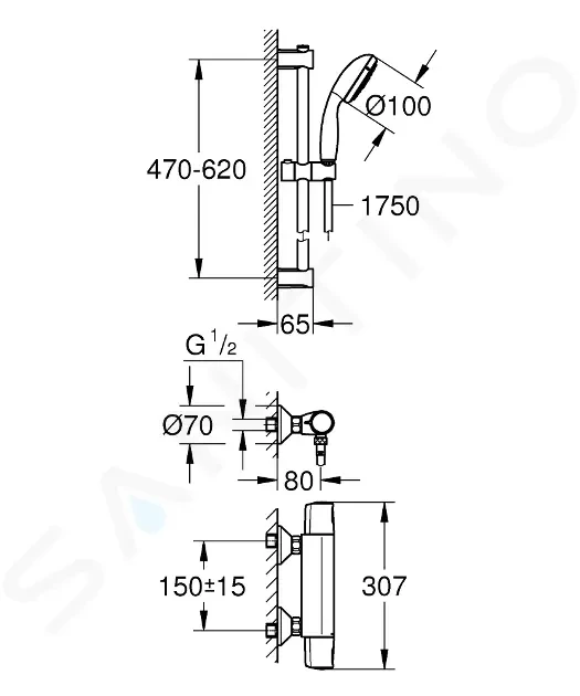 - univerzálny upevňovací systém vhodný ku všetkým štandardným sprchovým hadicám
