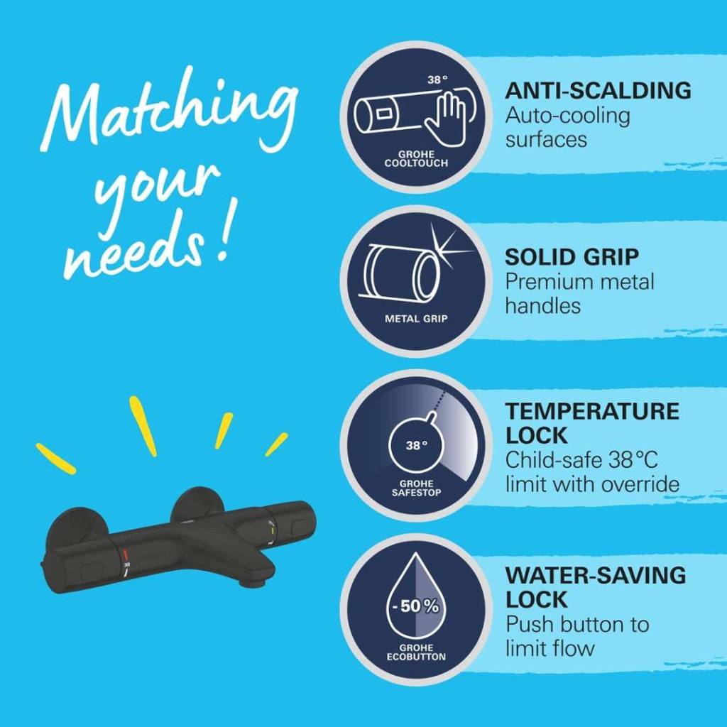 - tlačidlová poistka GROHE SafeStop na 38 °C