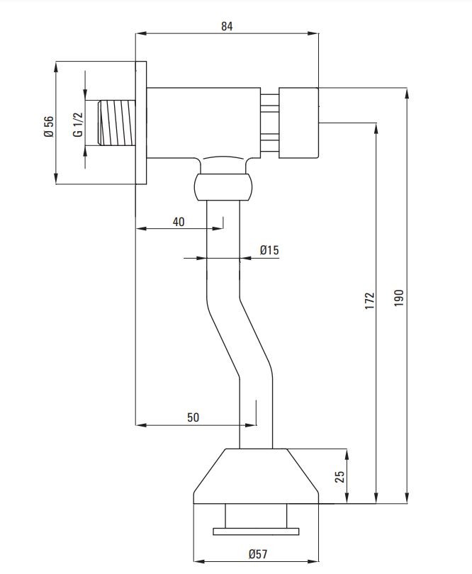 Pisoárová batéria vyrobená z najkvalitnejšej mosadze je extrémne odolná a odolná aj pri intenzívnom používaní na verejných miestach. Telo je vyvedené v elegantnom chróme, ktorý sa ľahko udržuje v čistote. Mechanizmus sa ľahko aktivuje stlačením. Disponuje časovačom, ktorý po určitej dobe automaticky vypne vodu.
