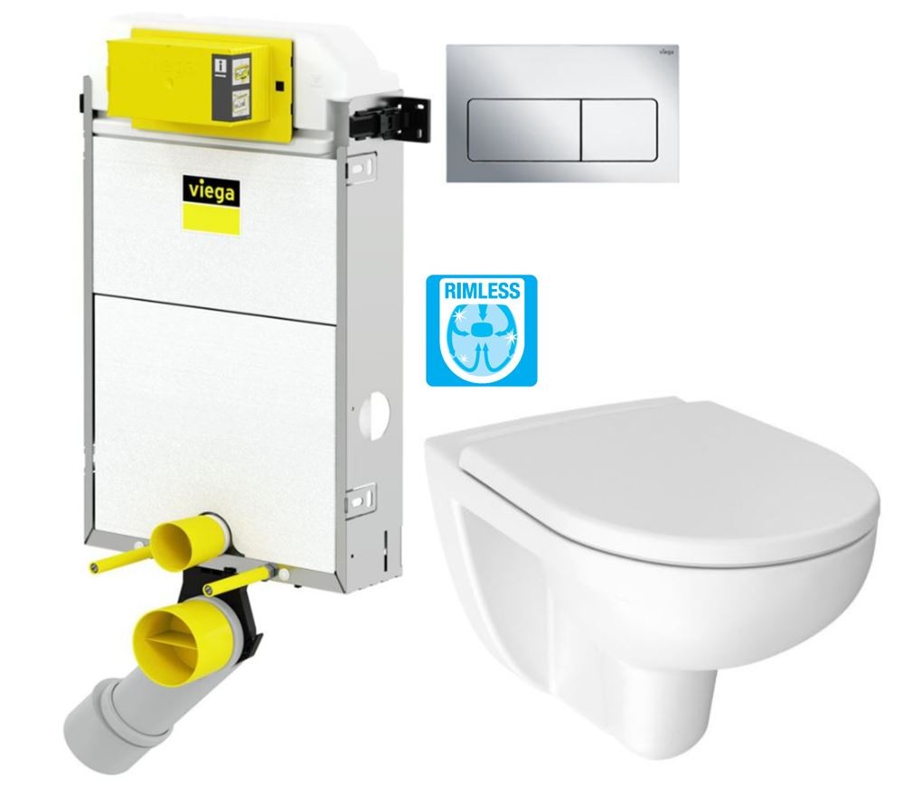 VIEGA Presvista modul PURE pro WC včetně tlačítka Life5 CHROM + WC JIKA LYRA PLUS RIMLESS + SEDÁTKO DURAPLAST V771928 LIFE5CR LY1