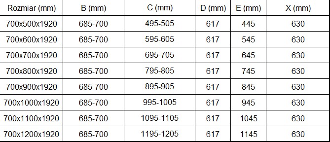 Súčasťou sprchových dverí je bočná stena ( 850-070-000-50-00 ) o šírke 70 cm /nastaviteľné 695-705 mm/ a výške 192 cm.