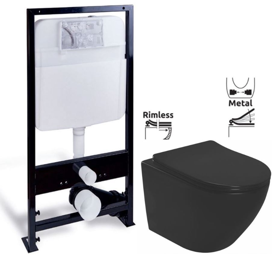 Závesná WC misa RIMLESS Carlo Mini Slim čierna matná (REA-C8489)