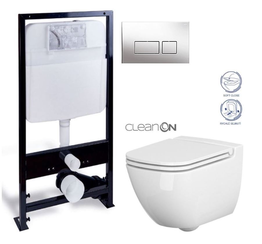 Závesná misa CASPIA NEW CLEAN ON /bez oplachového kruhu/ so zadným odtokom, funkcia splachovania 2/4l, 25,/5l alebo 3/5l.