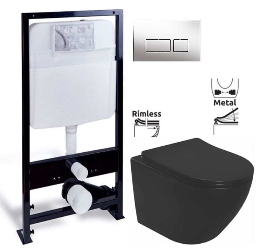 Závesná WC misa RIMLESS Carlo Mini Slim čierna matná (REA-C8489)