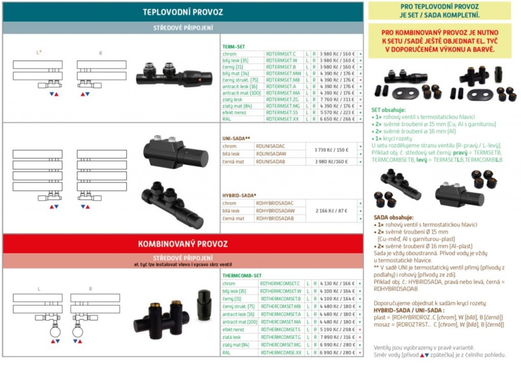 pre klasické radiátory s rohovým (krajným) pripojením: pre teplovodnú prevádzku