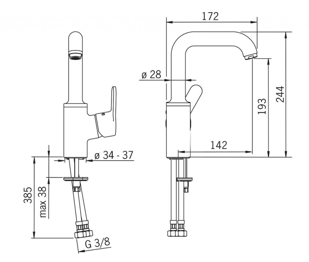 výtok: liaty, o 150 ° otočný (-) vyberateľná zarážka
