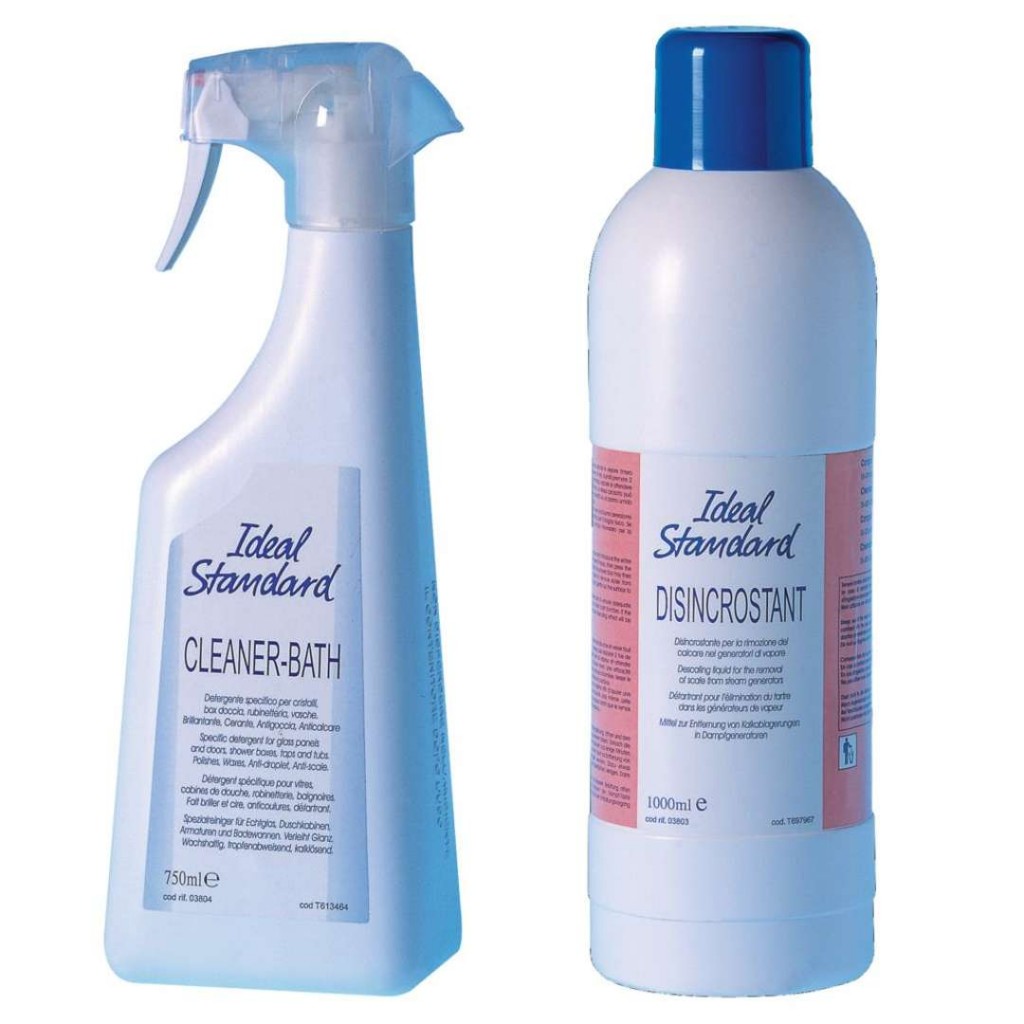 - špeciálny čistiaci prostriedok na vodovodné batérie, výplne sprchovacích kútov a sklenené plochy