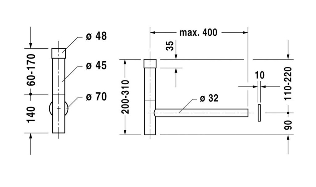 Pri použití tohto sifónu dbajte na výšku odpadu od hornej hrany keramiky do stredu odpadu, podľa technického listu.