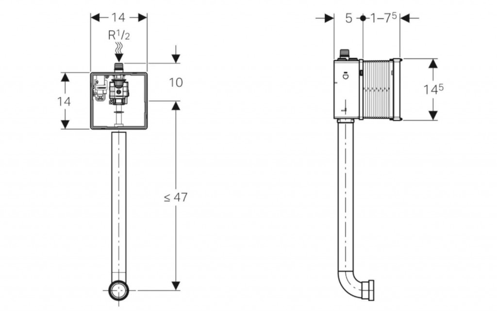 Súprava na hrubú montáž Geberit so splachovacím kolenom a predĺžením pripojovacej súpravy, na ovládanie splachovania pisoáru Basic