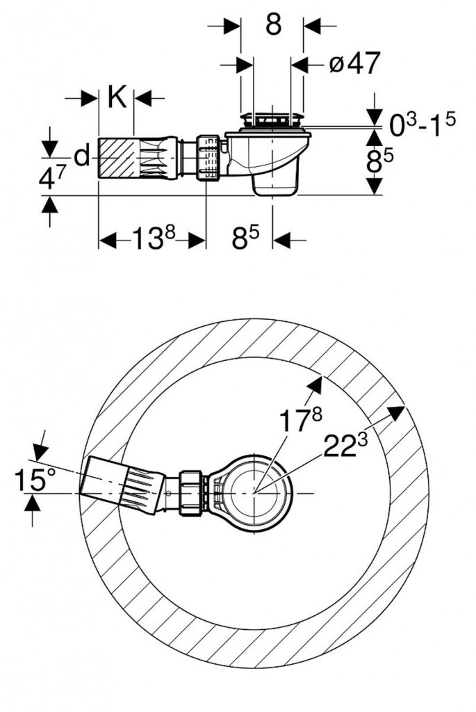 - pre sprchové vaničky s otvorom ventilu Ø 52 mm
