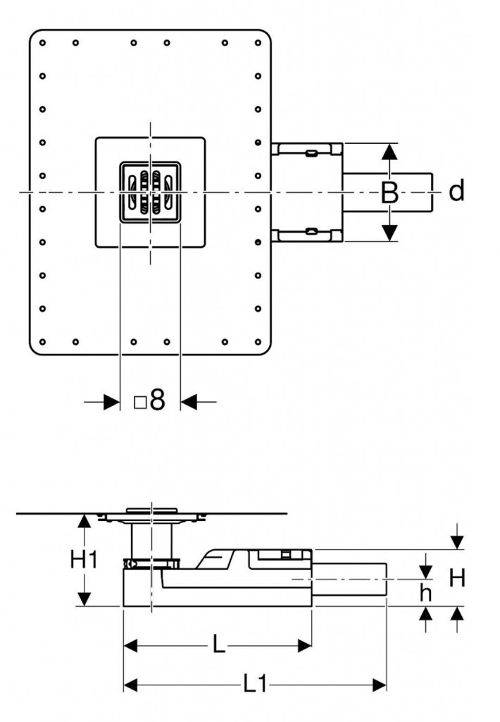 - rozmery: B = 130 mm, H = 90 mm, H1 = 90-220 mm, h 42 mm
