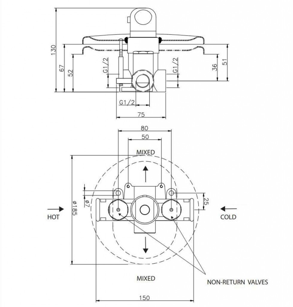 - pred zmiešavacou batériou je nutné nainštalovať spätné ventily