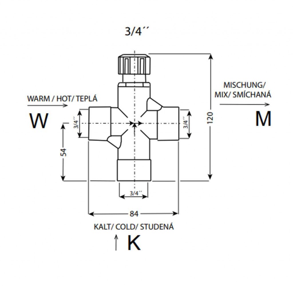- SLT 04 je termostatický zmiešavací ventil 3/4 "