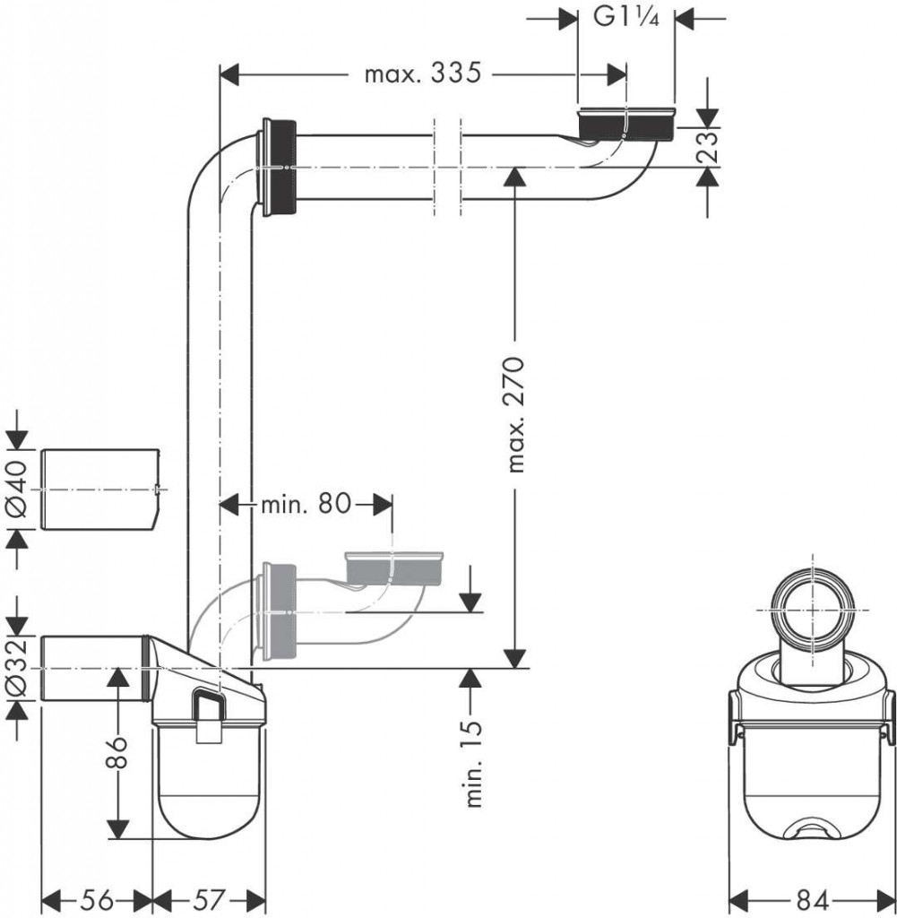 - pripojovací rozmer odtoku DN32