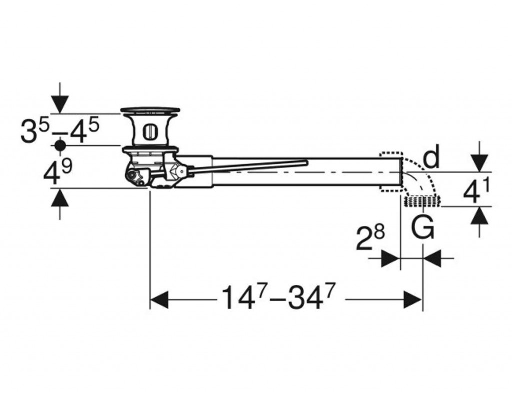 Odpadový ventil Geberit, priestorovo úsporný, úzke prevedenie, s vonkajšou zátkou odpadového ventilu s pákovým ovládaním