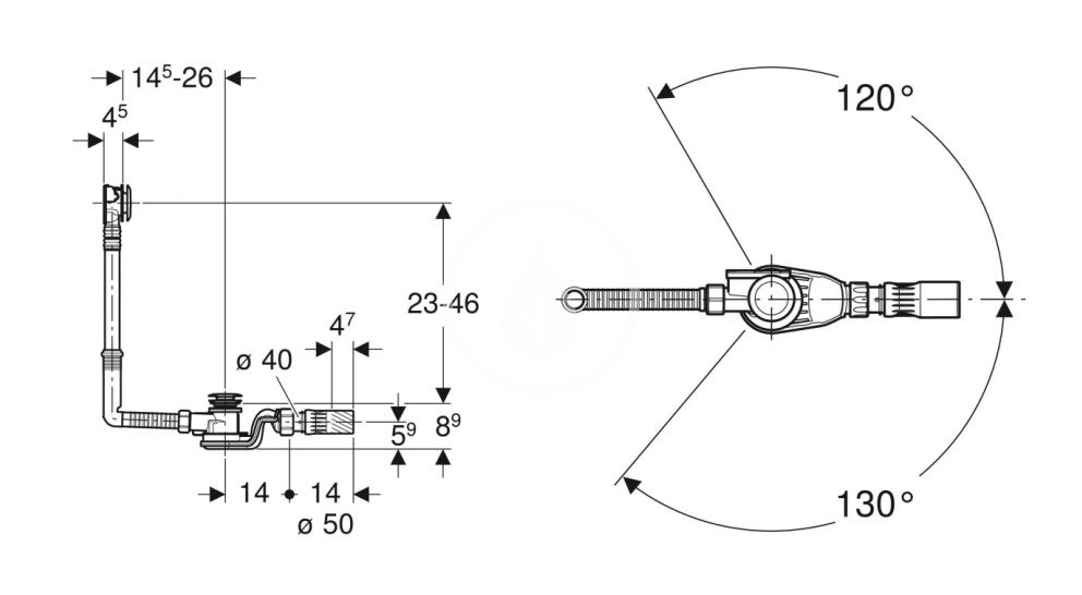 - pre vane a sprchovacie vaničky s otvorom ventilu Ø 52 mm