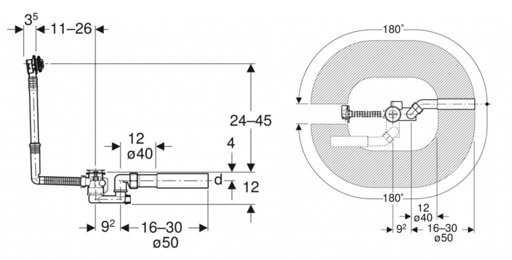 - pre vane a sprchové vaničky s otvorom ventilu, priemer 52 mm