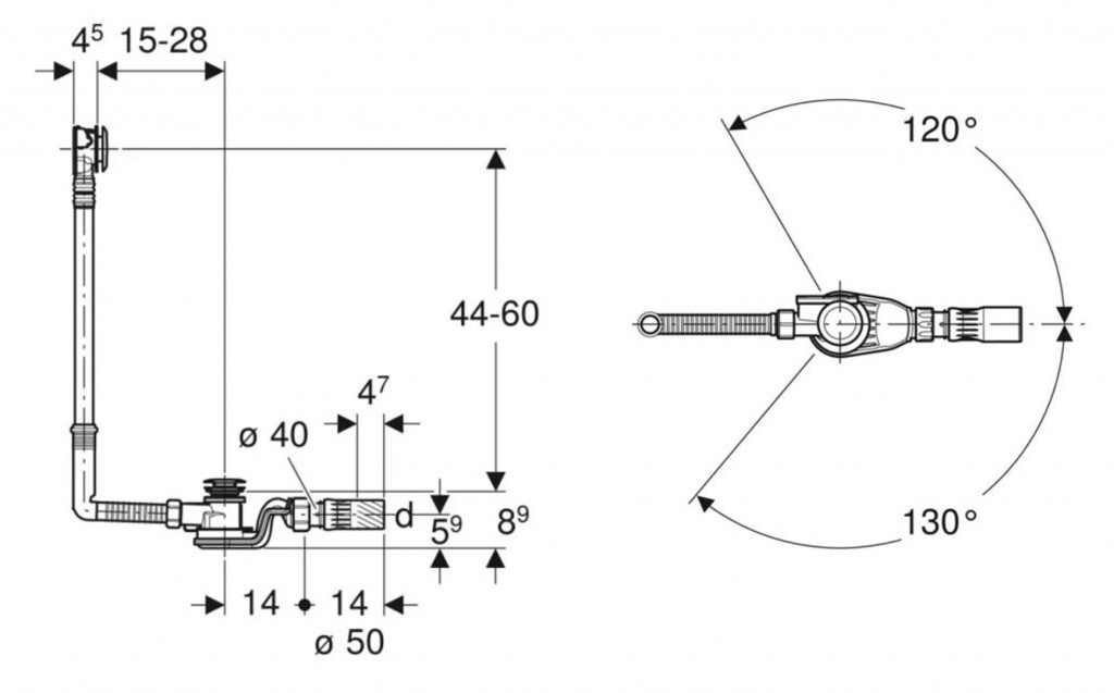 - pre vane a sprchové vaničky s otvorom ventilu, priemer 52 mm