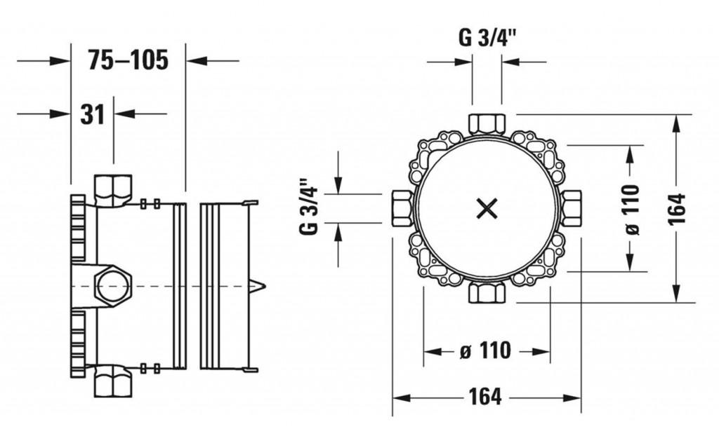 Základné montážne podomietkové teleso Bluebox 3/4"