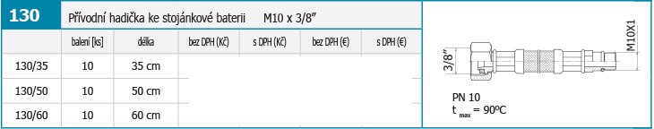 Na jednom konci prevlečná matka na druhom závit pre pripojenie do stojančekovej batérie .