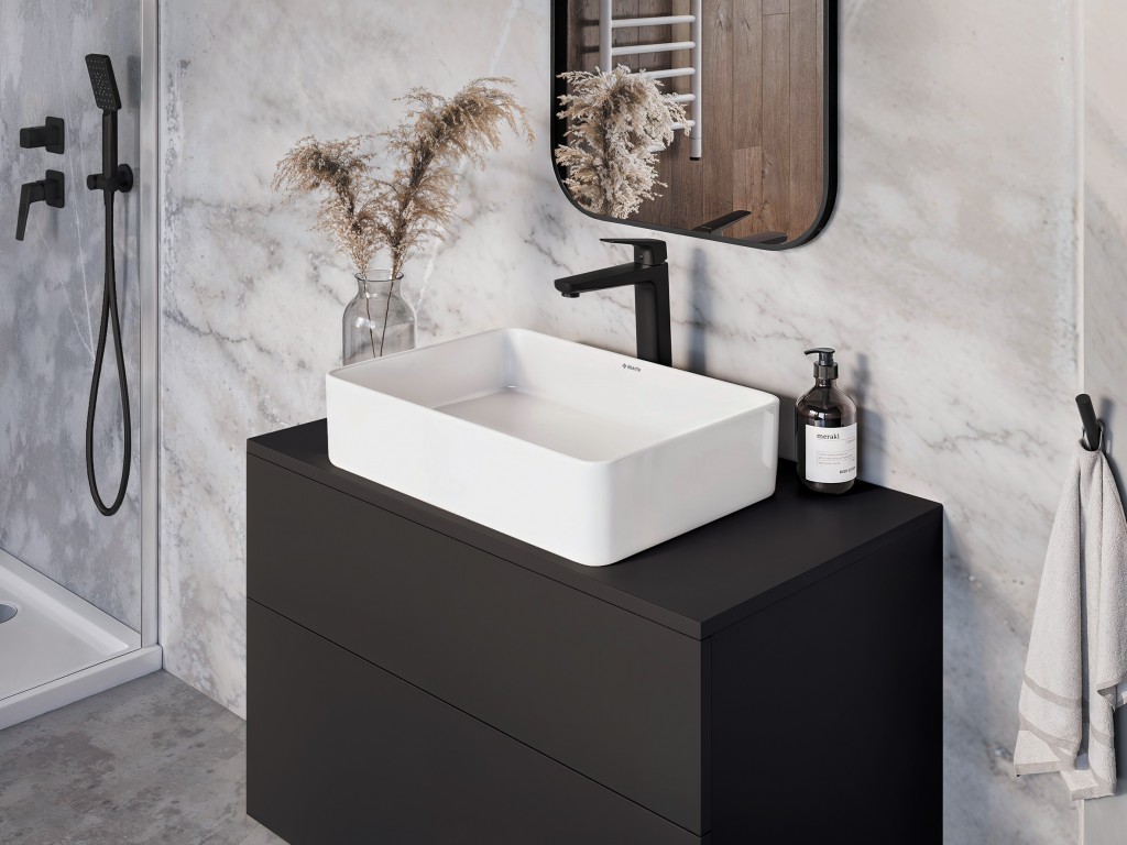 Kúpeľňová skrinka určená na inštaláciu pod umývadlo, slúži na uloženie kozmetiky, čistiacich prostriedkov a ďalších kúpeľňových doplnkov. Verzia s doskou, s možnosťou inštalácie umývadla na dosku.