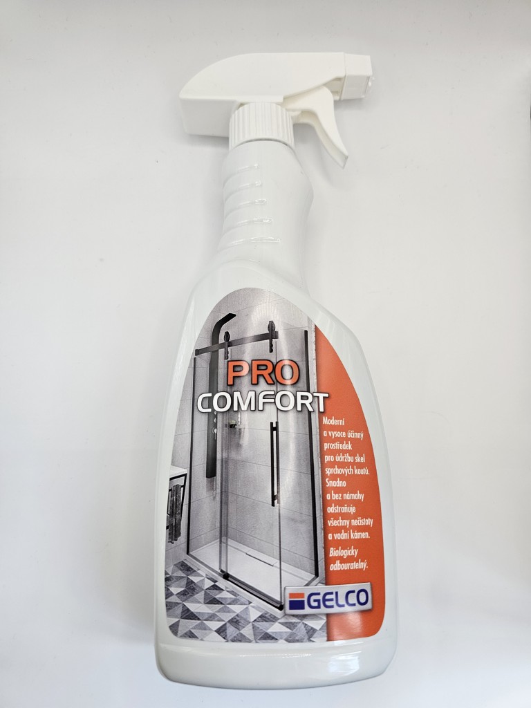 PRE COMFORT zo sklenených výplní rýchlo a bez námahy odstraňuje všetky nečistoty, škvrny od mydla a vodný kameň.