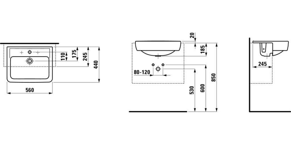 Polozápustné umývadlo s jedným otvorom pre batériu, s prepadom