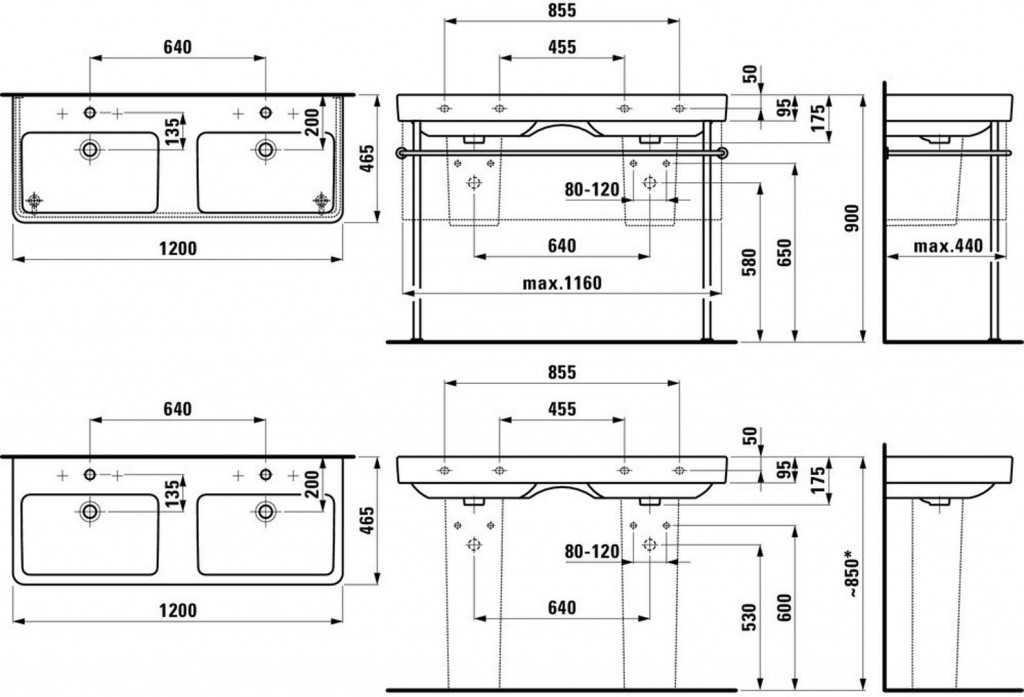 Dvojumývadlo bez otvoru pre batériu, s prepadom