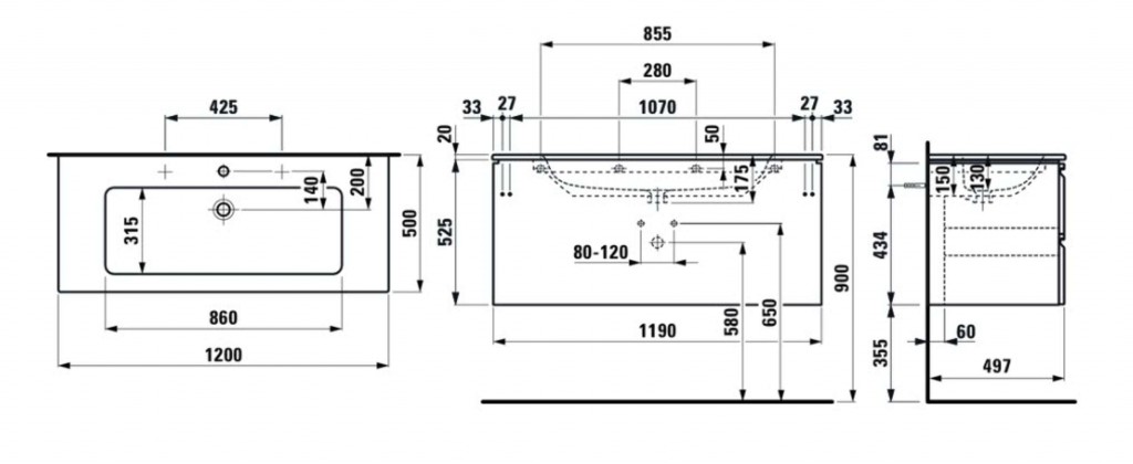 - rozmery skrinky: 1200 x 500 x 530 mm