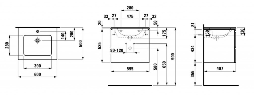 - rozmery: šírka 600 mm, hĺbka 500 mm