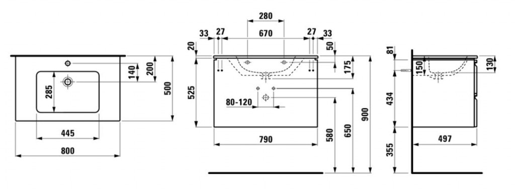 - rozmery: šírka 800 mm, hĺbka 500 mm