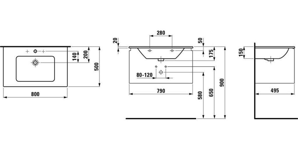 - umývadlo s jedným otvorom uprostred