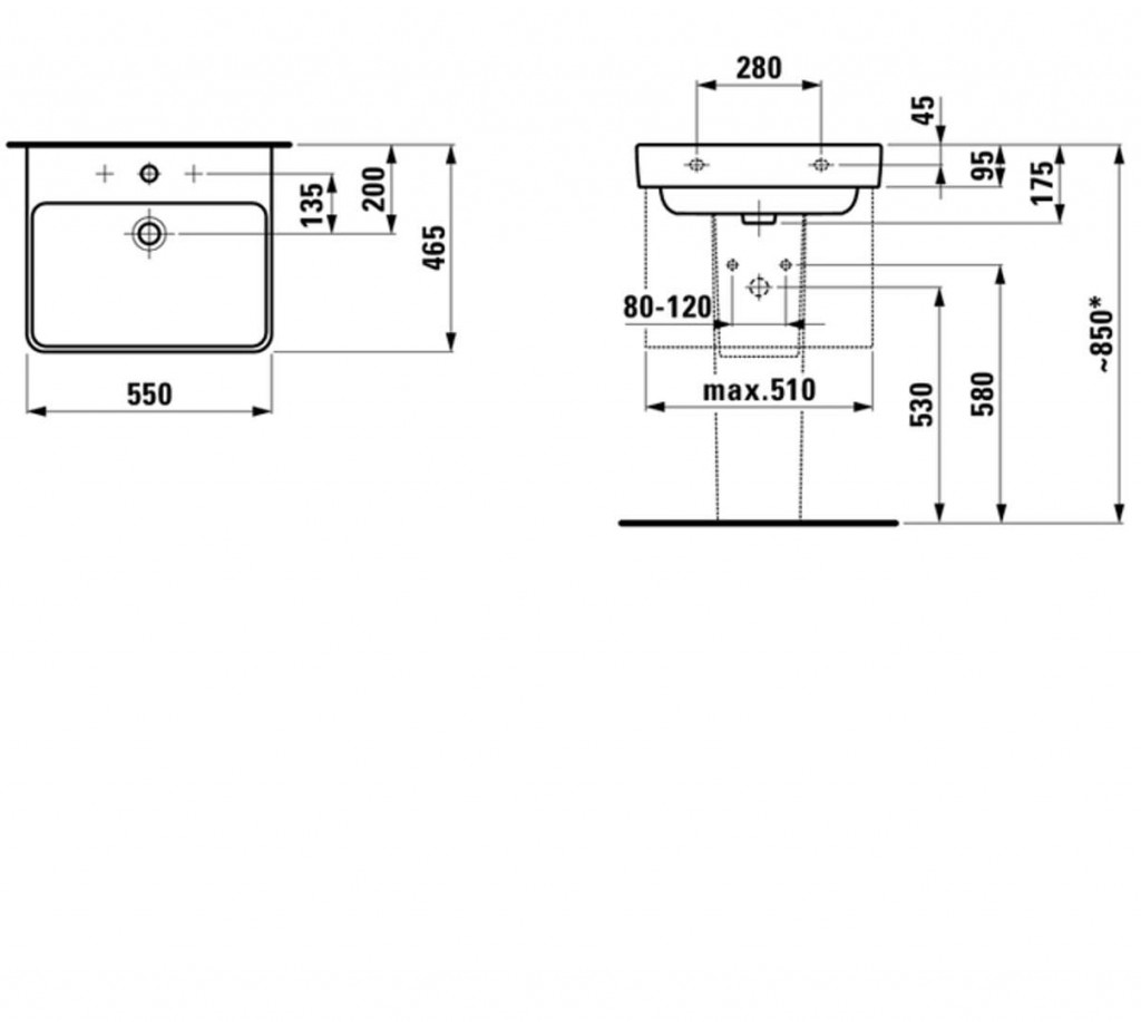 Umývadlo s jedným otvorom pre batériu, s prepadom
