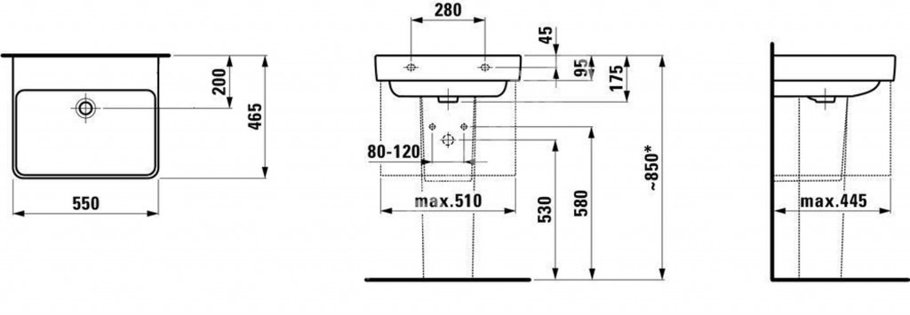 Umývadlo bez otvoru pre batériu, s prepadom.