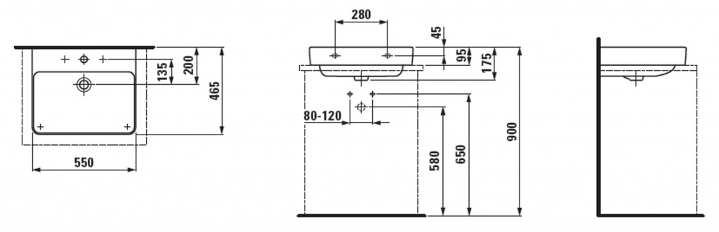 Umývadlo s tromi otvormi pre batériu, s prepadom.